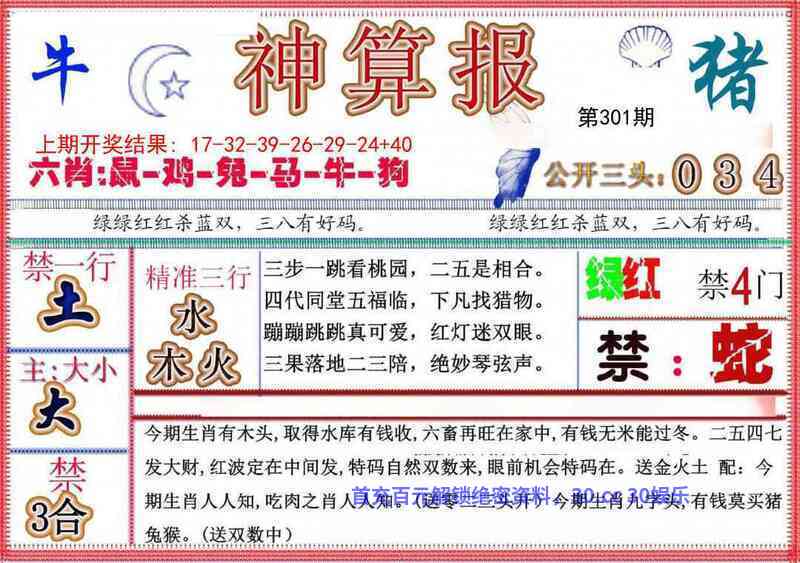 | 301期:七肖【龙狗牛猪兔鸡虎】开:牛05准 |