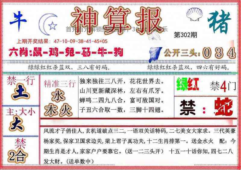| 302期:七肖【龙鼠狗兔鸡虎牛】开:猴22错 |